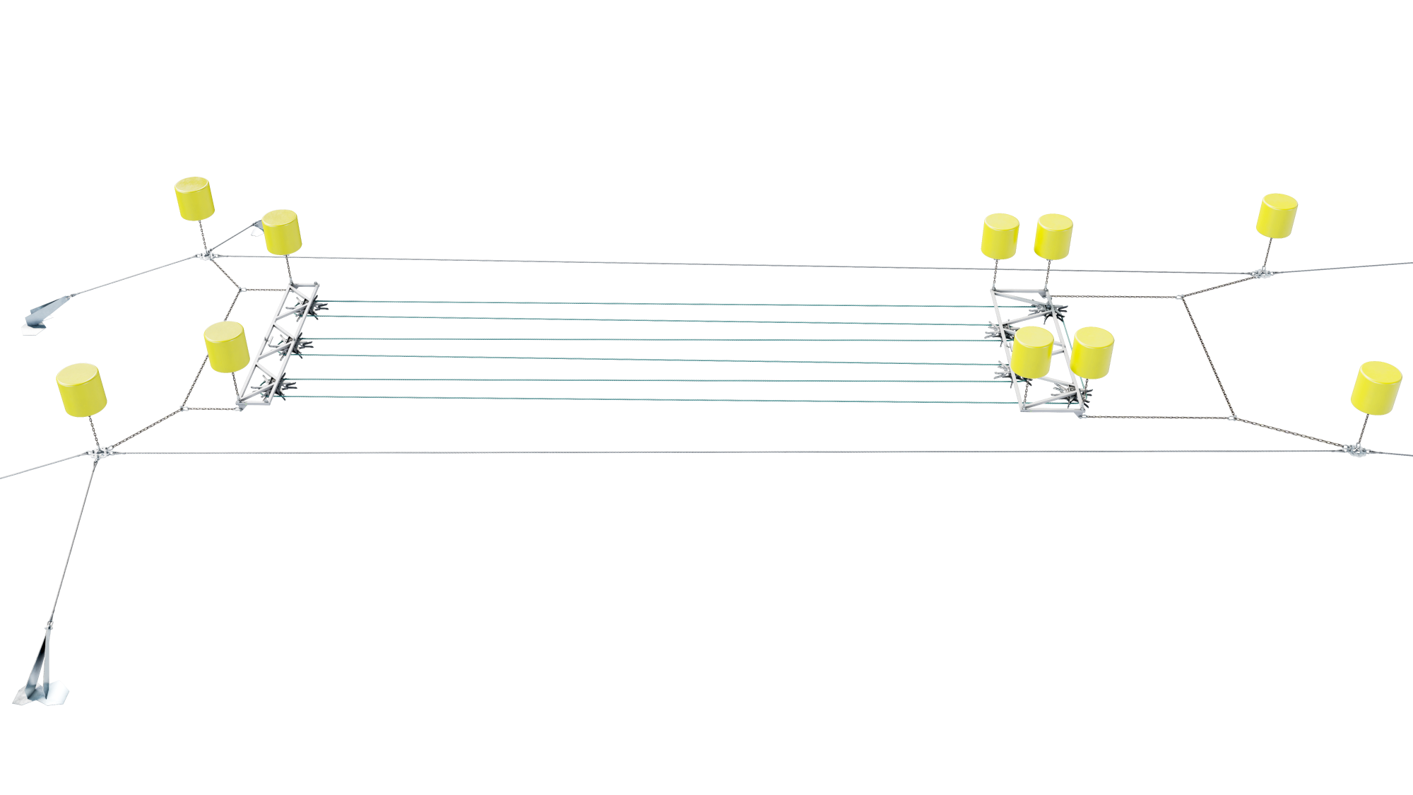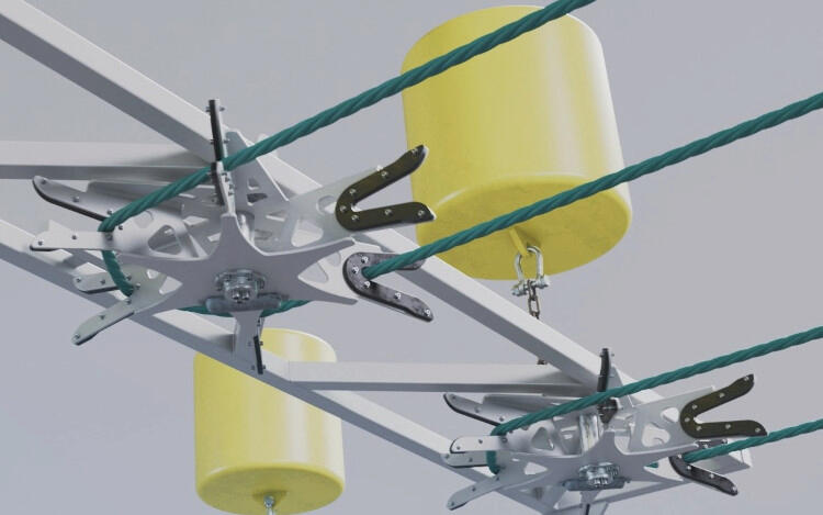 The trusses are the connection between the loop system and the moorings. They are connected to an outer frame in which the rope-and-pulley system sits, but the loop itself also shares some of the tension. This it what makes it possible to place the seaweed lines as close as 80cm.